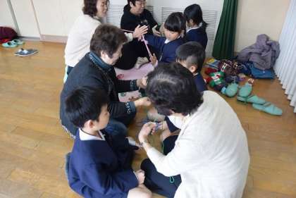 生活科の学習で、地域の方々に来ていただき、昔から伝わる遊びを教えてもらいました。