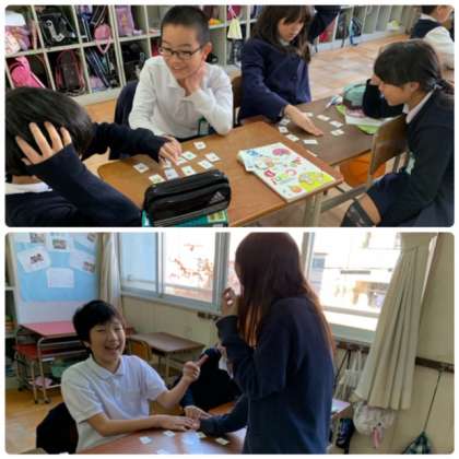 食べ物の名前を聞き取って、カードを取っていくゲームをしました。英語の発音を聞き分けるのってとても難しいですよね。でも、だんだんとカードを取るスピードも速くなり、白熱した戦いになりました。