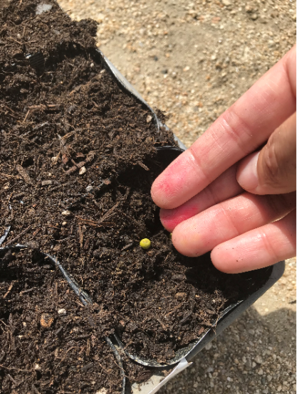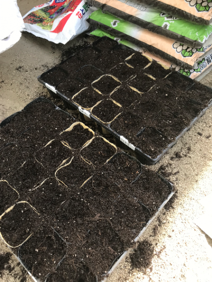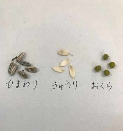 きょう、ひまわり、きゅうり、おくらの たねを うえました。
