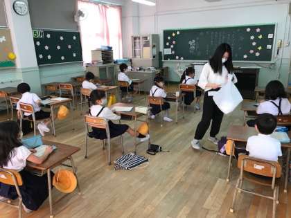 5月12日(火)、子どもたちが学校に戻ってきました。2年〜6年までの登校日。分散登校で少しさびしかったですが、子どもたちも、教職員も、再会を喜びました。元気に登校してきてくれたことが、何よりうれしかったです。