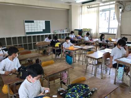 保護者の皆様のご協力で、全員の子どもが、マスクを着用して登校してくれました。