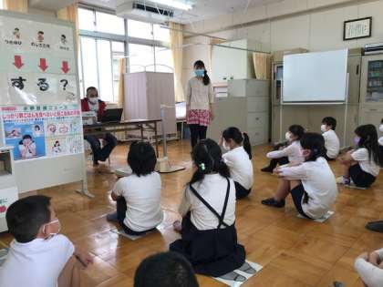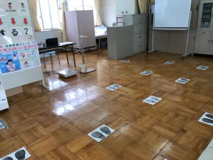 5年生は、発育測定がありました。久々に保健室に入ると、座る位置がはっきりと表示されていました。間隔をあけ、静かに順番を待ちました。