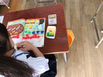 1年生は「かず」の学習をしました。先生のお話をしっかり聞き、教科書におはじきを置いていきました。みんな、元気に学校に来てくれてうれしいです。