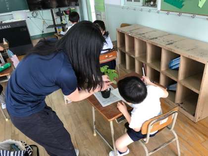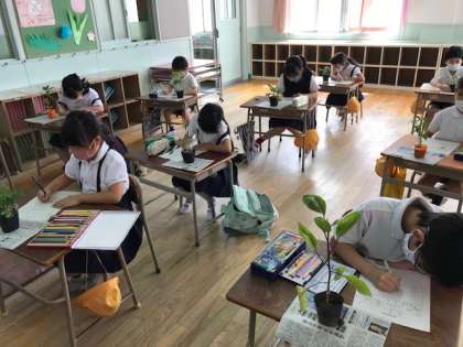 2年生は、植物の観察をしました。ミニトマトや枝豆をしっかり見ながら、ノートに写しました。大きく育っていくよう、続けて観察していきます。