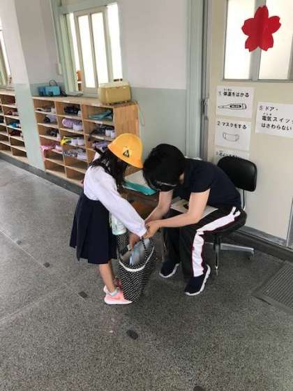 4回目の登校日。今日も、子どもたちの元気な顔を見ることができました。教室に入る前に担任の先生に「健康観察表」を見せ、熱がないかお返事をしています。暑くなってきましたが、マスクもきちんと着けてきています。