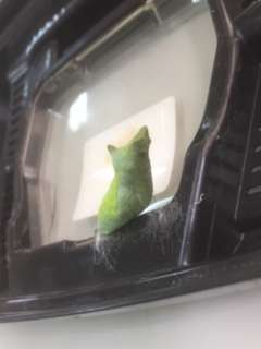 黄緑色だったさなぎですが、少し黒っぽいところが増えてきました。