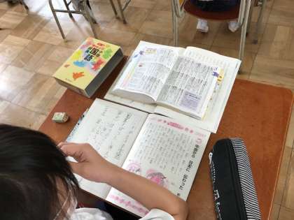 4年生は、音読や、国語辞典を使っての意味調べをしました。