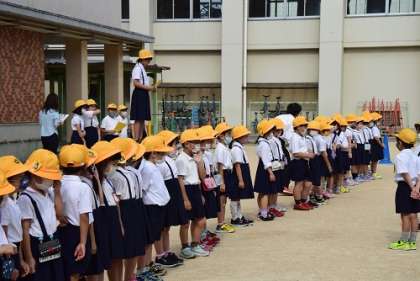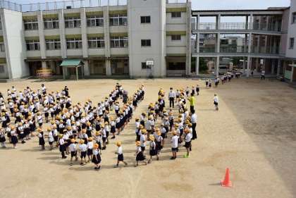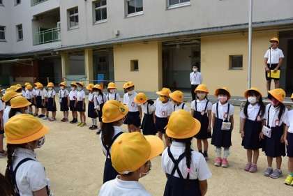 土曜日に入学式を終えた1年生を、全校児童で迎えました。