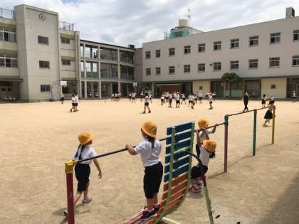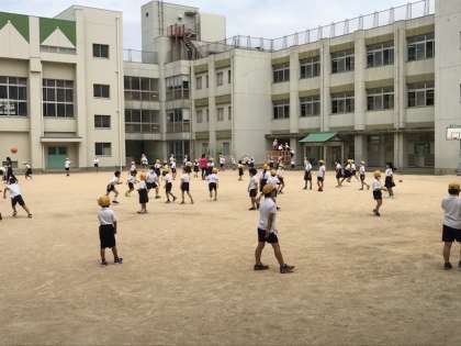 梅雨の晴れ間。子どもたちは、休み時間になると、次々に運動場にやってきます。狭くても、みんなで上手に遊んでいます。本当に楽しそうで、見ている方もうれしくなってきます。