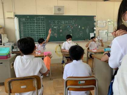 1学期最後の授業です。これまで習ったことや、雑学、なぞなぞなど、様々な分野から問題を出題。班対抗でとても盛り上がりました!