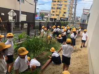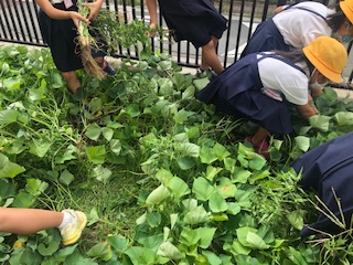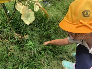 今日は、少し曇り空だったので、みんなで雑草抜きをしました。