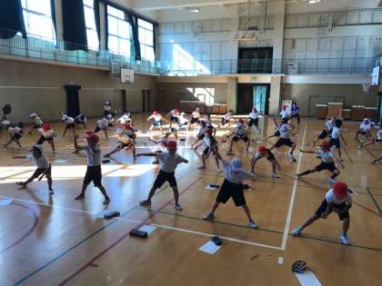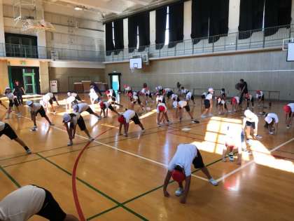 運動会に向けての練習でした。西日が差す体育館で、楽しく、元気いっぱいに踊りました。