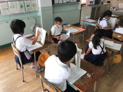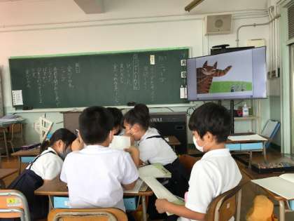 物語文『ニャーゴ』を学習しています。今日は、「ねこ」や「ねずみ」の様子を読み取り、気持ちが表れるように音読を工夫する学習でした。