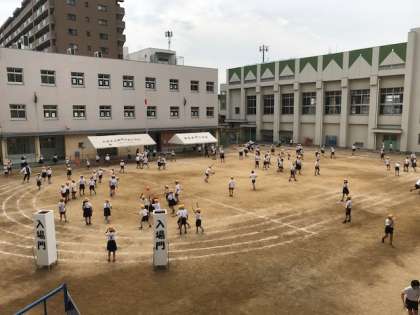 昼休み。青空の下、今日も運動場は大賑わいでした。たくさんの子たちが、歓声をあげ、本当に楽しそうです。遊びの輪がだんだん広がってきています。