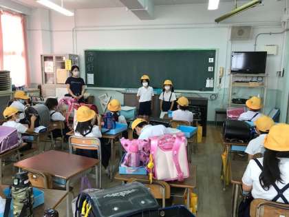 1日の最後は、おわりの会をします。このクラスでは、日直が前に出て、その日のエピソード(うれしかったこと)を発表しました。