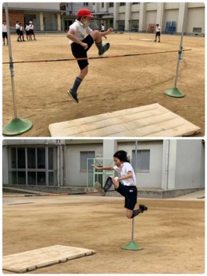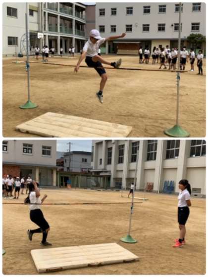 今回の単元は『走り高跳び』です。この単元は自分の記録との闘いです!人と比べるのではなく、自分が跳べる高さをどんどんチャレンジしていきます。今回も新記録を出した人が何人もいました。
