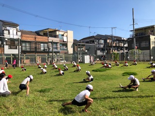 地域やPTAのみなさんが、定期的に芝刈りをしていただいているおかげで、楽しく運動することができました。芝生の上は、本当に気持ちがいいです。