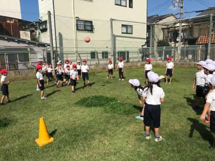 秋晴れの下、2年生は、第二運動場で体育をしました。