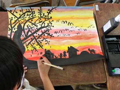 3年 図画工作 「夕焼けの風景」