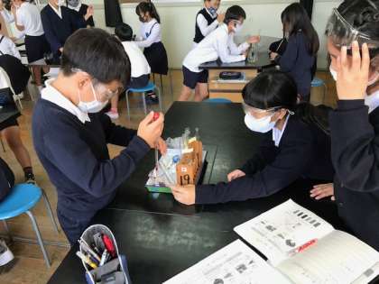 理科では「ブルーベリーのしるで水溶液の性質を調べよう」の課題で実験をしました。
