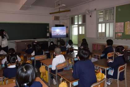 その後、、低学年は津波のDVDを見て、いざという時にどうすればよいのかを考えました。