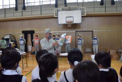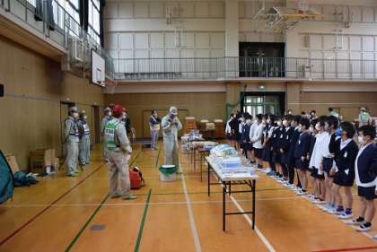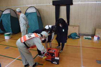 講堂では、避難所開設をして、3年生から6年生の子どもたちが見学しました。