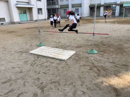 助走の速さや角度、足の上げ方に気をつけて、リズムよく跳びました。