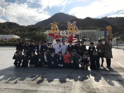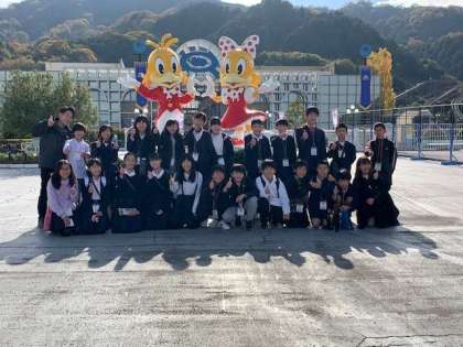 最初の活動場所、レオマワールドに到着しました。少し雲が出ていますが、雨の心配なく、楽しく活動しています。