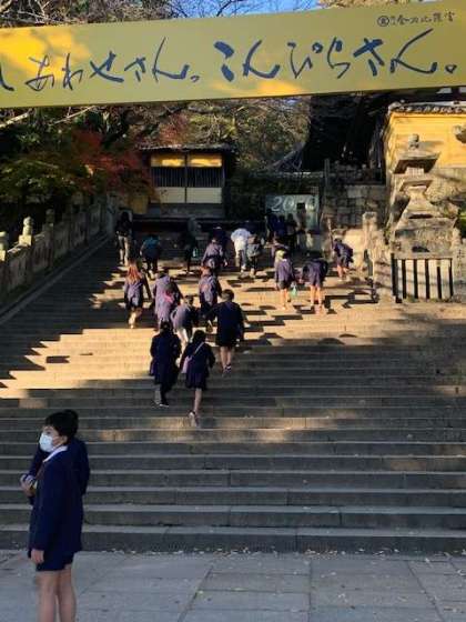 金刀比羅宮まで、785段の階段をあがります。なかなかハードですが、上からの景色が楽しみです。