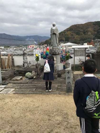 十六地蔵に一人一人対面してから、貞光小学校へ移動します。