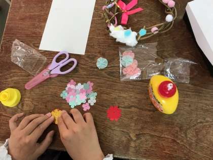好みの飾り付けをし、お互いに見合いながら、実に楽しそうに活動していました。