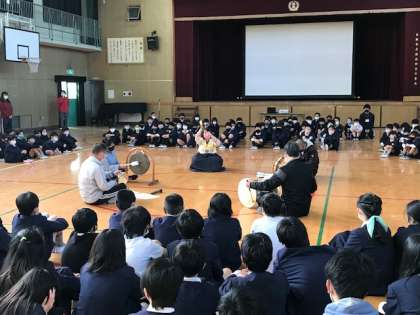 初めに先生たちが登場し、4つの楽器を使った合奏(サムルノリ)を演奏しました。