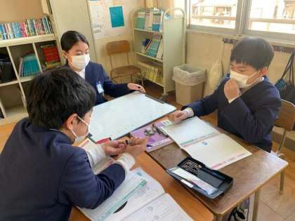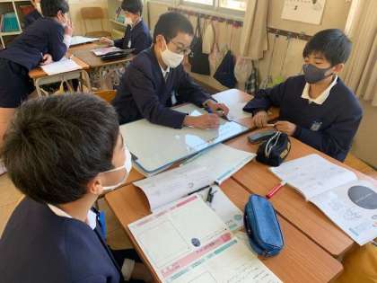 「わたしのせいじゃない」という単元の学習で、いじめについて考えました。いじめが起こっているクラスで、「わたしのせいじゃない」と言っている子どもたちに、どんな声かけをするのかを一人ひとりが考えました。最後にグループで、いじめの止め方について話し合い、いじめは絶対にあってはいけないことだと、再認識することができました。