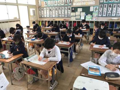 掃除終了のチャイムのあと、教室をのぞくと、さっそく『昼学習』が始まっていました。