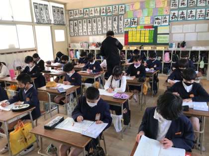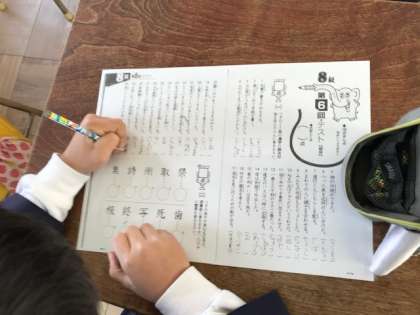 4年生は、漢字プリントや計算ドリル(答え合わせ)をしました。