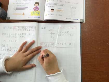 商(答え)が小数になることに気をつけながら、筆算を丁寧に書いていきました。
