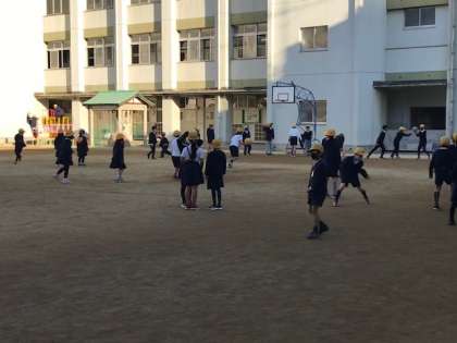 教室にランドセルを置いた子どもたちは、わずかな時間でもと運動場に出てきます。