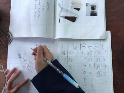 この時間は、「しょうゆさし」の二つのあなの役割が書かれている文章を読んでいきました。