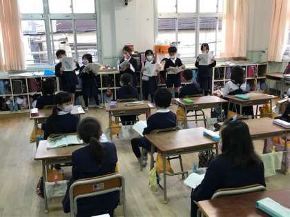 聞いている友だちから、「すらすらよめていました」「はやさがちょうどよかったです」「おおきなこえでよめました」などの感想が出されました。