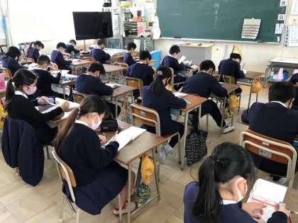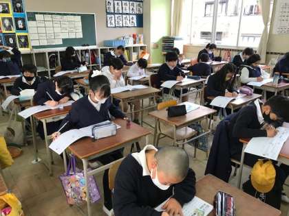 集中して問題を解く様子が、写真からも伝わります。(5年生と4年生)