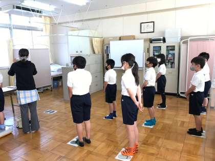 保健室には入れるのは10人だけ。さすが5年生です。1人退室すれば1人入る、をスムーズに行いました。