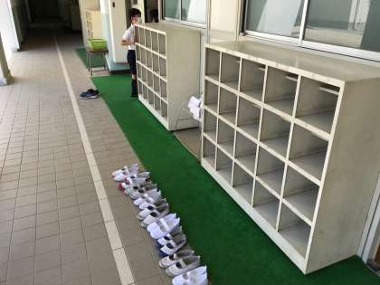 今日は、5・6年生の日。コロナの関係で、距離を空けて並びました。