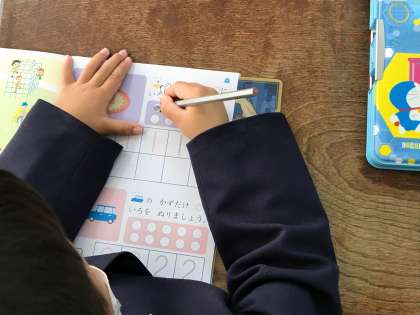 1時間目にえんぴつの正しい持ちかたを学習しました。