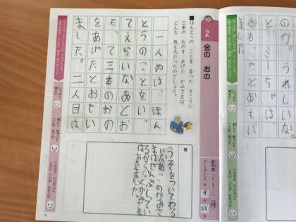 『金のおの』を読み、登場人物(かみさま)の気持ちについて考えました。