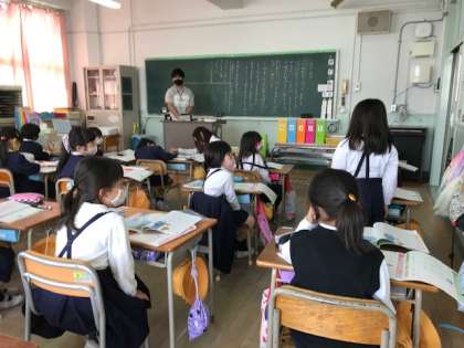 はじめに、自分の考えをとなりの友だちに伝え、さらにクラスみんなに伝えました。