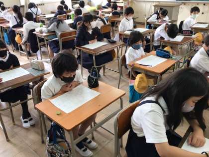 4年生も、自宅や学校で、プリント学習にじっくり取り組み、4時間目はテスト問題をしました。