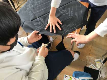 6年生は、家庭科の学習。エプロン製作がスタートしました。