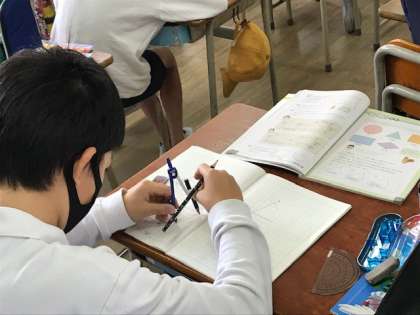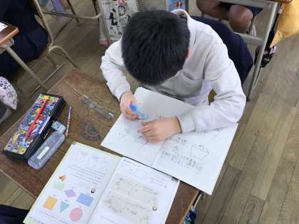 この時間は、見本と合同な平行四辺形やひし形の作図に取り組んでいました。