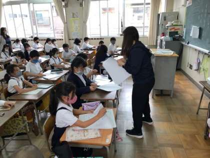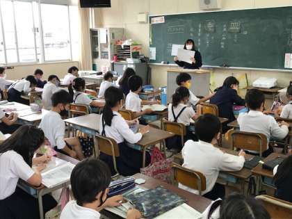 3年の教室では、午後から取り組むプリントの説明を受けていました。