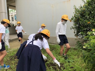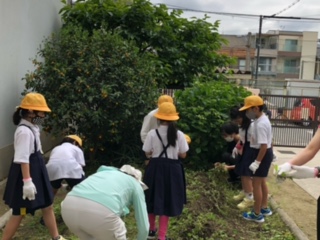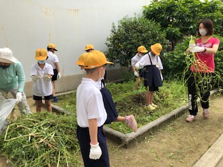 雨が上がっていた間を見計らって、学習園の草抜きをしました。たくさん生えていた雑草が、ほとんどなくなり、とてもきれいになりました。これから、新しい作物を植えたいと思います。
